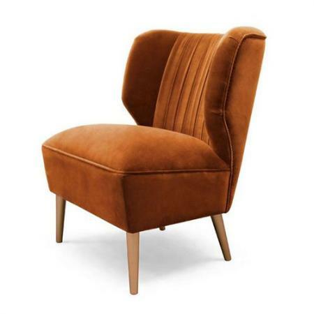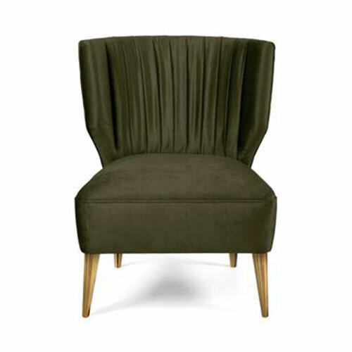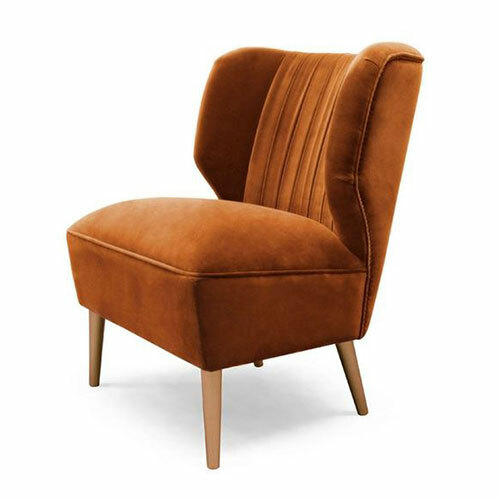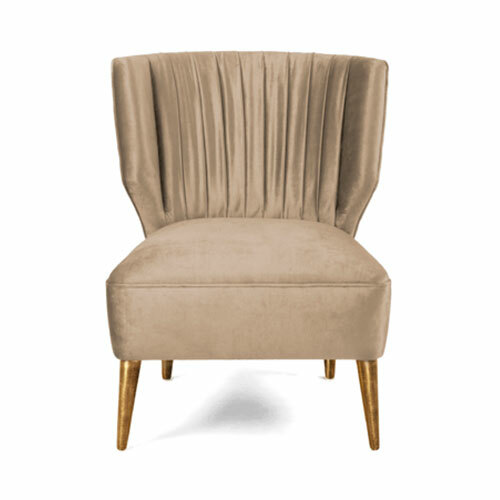 Retro glamour inspired upholstered lounge chair featuring a vertical quilted back and pin buttons along the back seam.