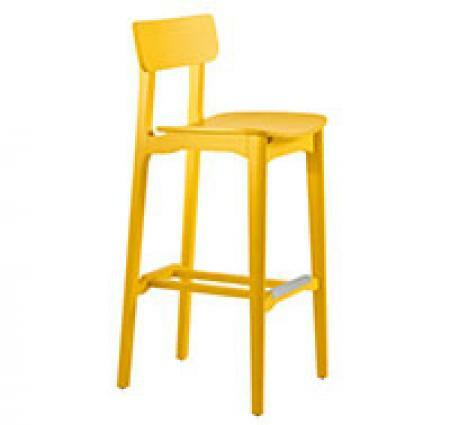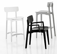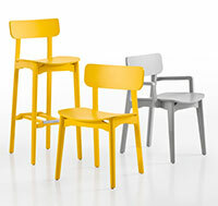 A retro style characterizes the Cacao collection which consists of a chair, stool and armchair.