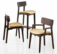 A retro style characterizes the Cacao collection which consists of a chair, stool and armchair.