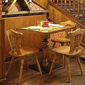 Beautiful timber table with a traditional style. Ideal for use in a variety of hospitality interiors.