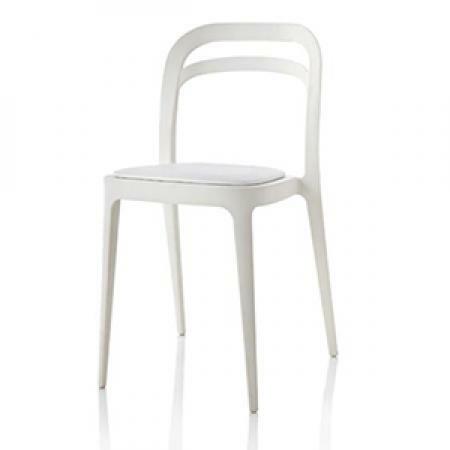 The JULIE dining chair is a stackable lightweight seating option.