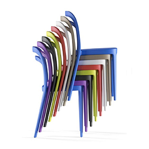 The JULIE dining chair is a stackable lightweight seating option.