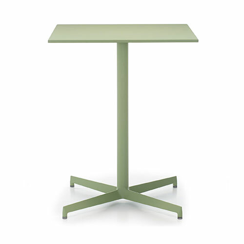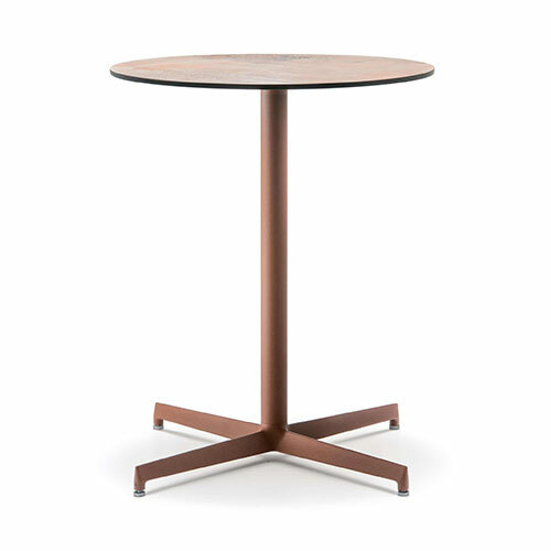 4 spokes die casted aluminum base and steel tube column. Custom table top.