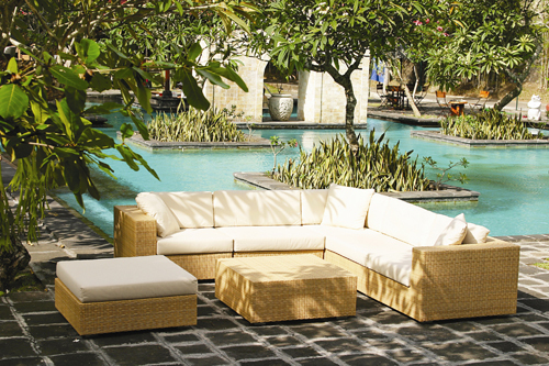 Polypropylene weave. Upholstered seat cushion. Custom fabric available.