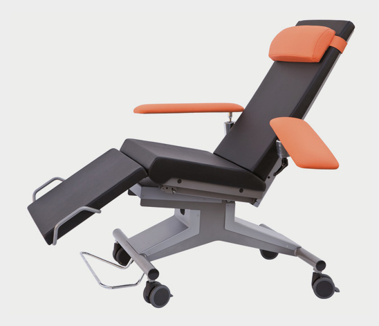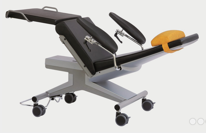The entire lounger surface of multiLine bps can be adjusted from the comfortable sitting to the shock position. This movement is either done manually with the aid of a gas spring after having operated the foot pedal, or electromotive actuated by a remote control