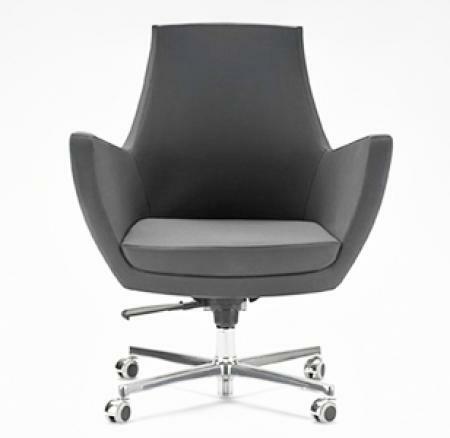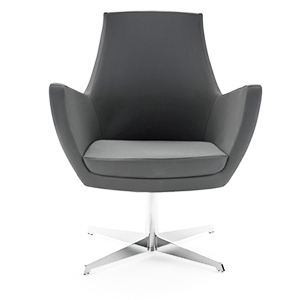 Polished chrome metal base. Swivel options available. Fully upholstered shell available in custom fabrics and leathers.