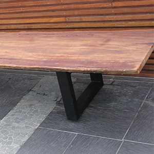 Solid timber slab with steel frame.
