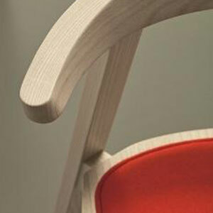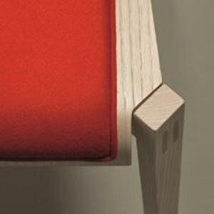 Timber, left natural, custom stained or lacquered. Custom upholstery. Available with or without arms.