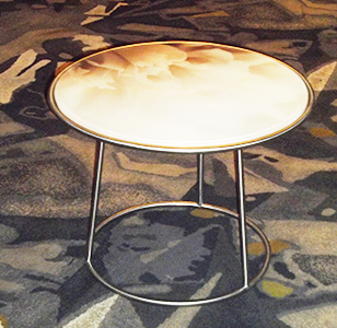 Steel base with customisable glass inlay top.