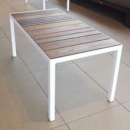 Solid timber slat top with steel frame. Powder coat finish.