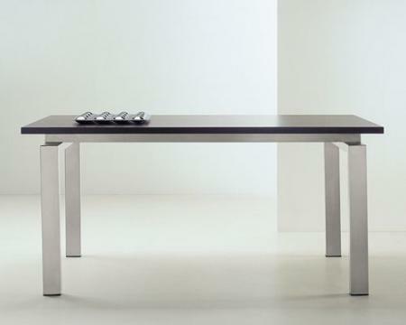Frame: brushed stainless steel frame 80×40 mm. Table top: toughened glass top clear or frosted or laminate top colours wenge, bleached oak or white.