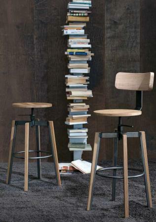 Stool with and without back rest in solid oak and metal frame