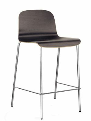 Shell: moulded laminate seat and with plywood shell oak veneered, stained in wengé, washed oak, ebony and zebrano. Frame: chrome steel tube frame.