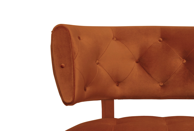 Leather or fabric custom upholstery with button detail and upholstered or timber legs